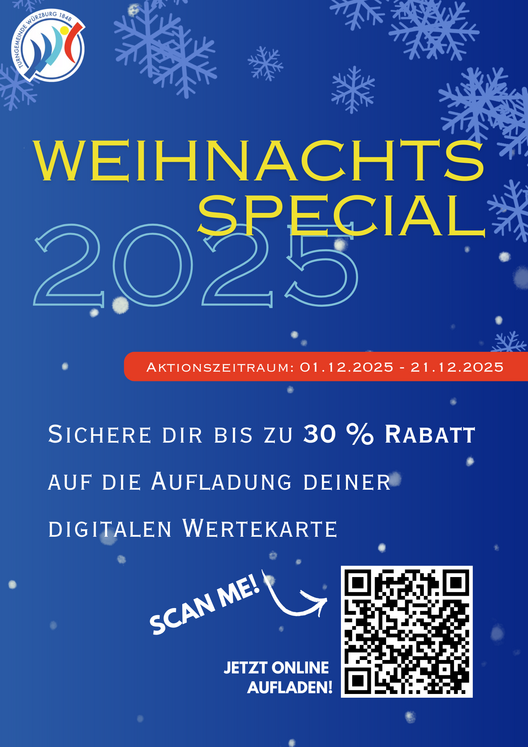 Auch in diesem Jahr möchten wir uns in der Vorweihnachtszeit für eure Treue und Unterstützung bedanken. Vom 01.12.2025 bis zum 21.12.2025 habt ihr die Möglichkeit, einmalig vergünstigt Punkte für unsere digitale Wertekarte zu erwerben. Dieses Angebot richtet sich sowohl an alle, die selbst regelmäßig unsere Fitness- und Gesundheitskurse besuchen, als auch an diejenigen, die einem anderen Vereinsmitglied eine kleine sportliche Freude machen möchten.